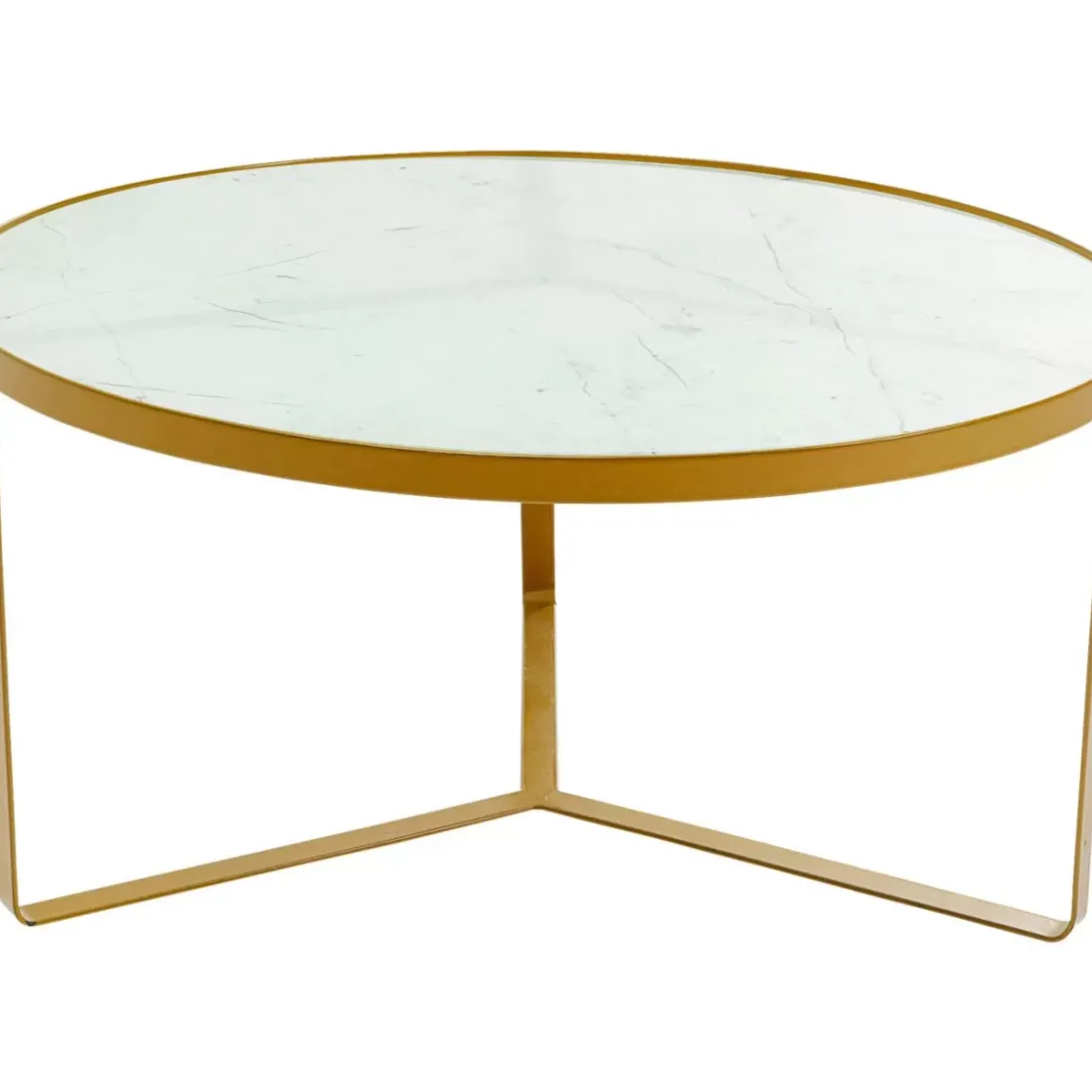 - Runder,Kleiner Beistelltisch Aus Glas In Marmoroptik Mit Gestell Aus Goldenem Stahl