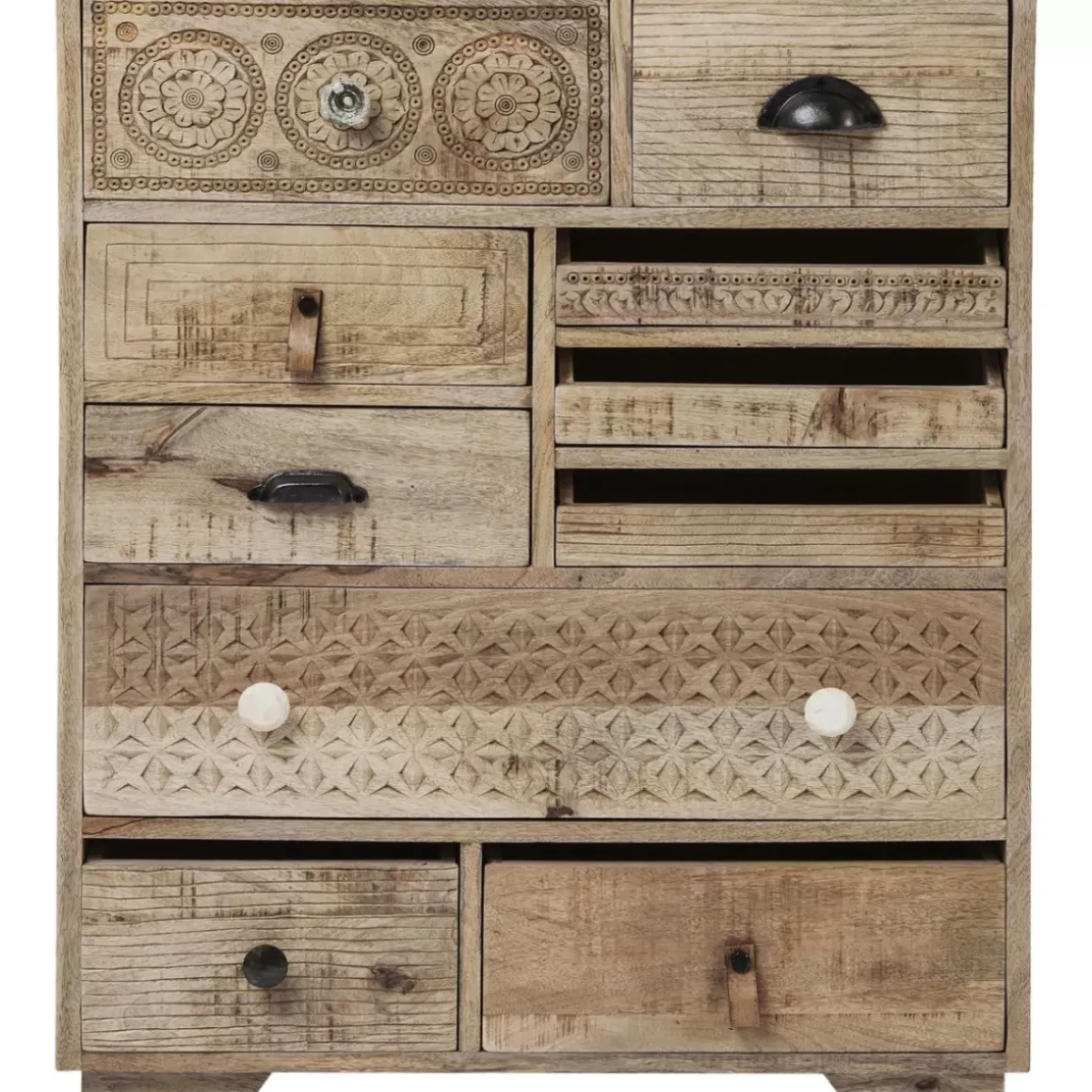 - Handgefertigte Kommode Aus Mango-Massivholz Mit Dekorativen Schnitzereien Und Zehn Schuben Mit Individuellen Fronten