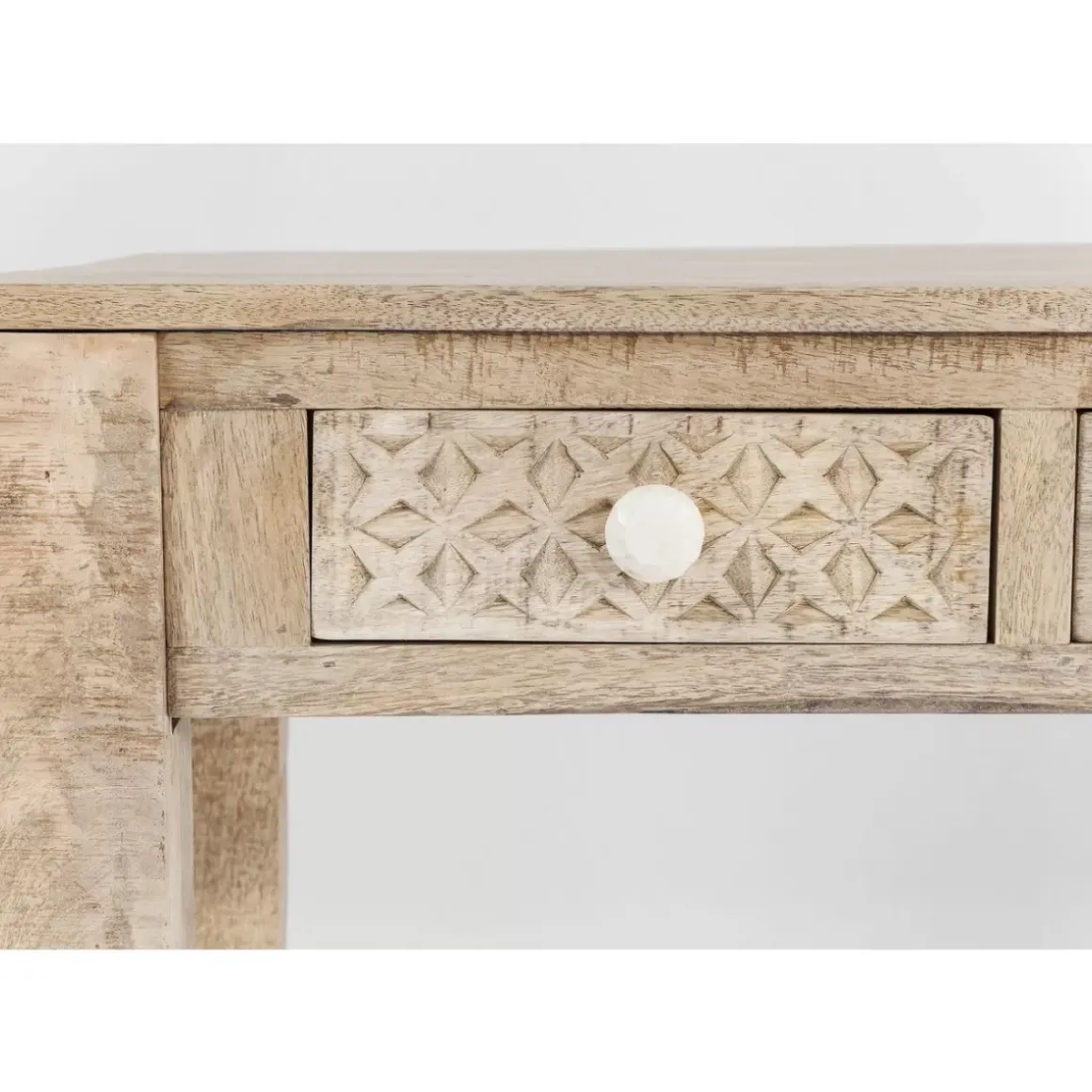 - Im Ethno-Look: Handgefertigter Schreibtisch Aus Mango-Echtholz Mit Geschnitzten Ornamenten Und Sechs Individuellen Schuben