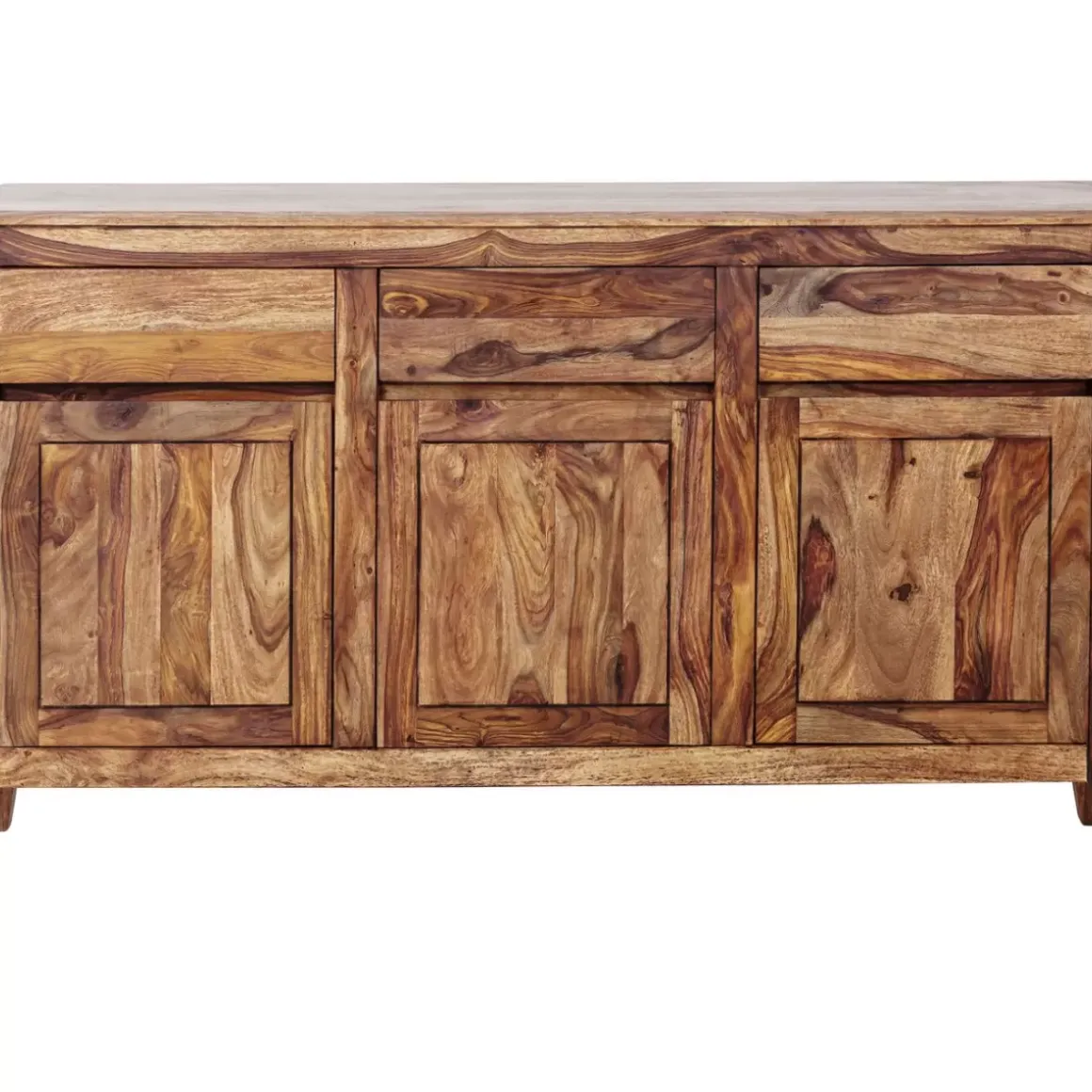 - Sideboard Aus Sheesham-Massivholz Gebeizt-Lackiert Mit Drei Schuben Und Turen