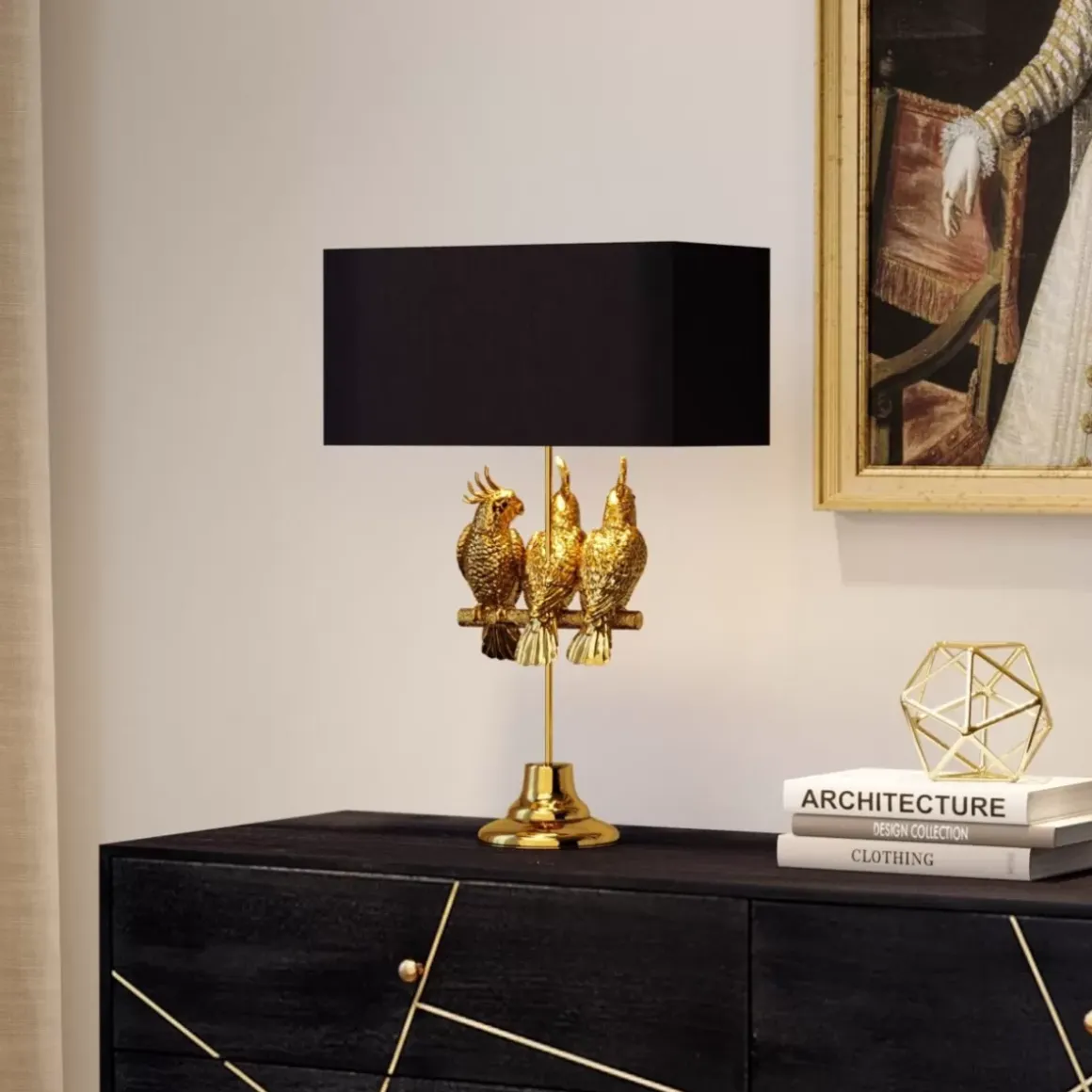 - Interior-Highlight Sind Die Drei Papageien Auf Dem Lampenfus