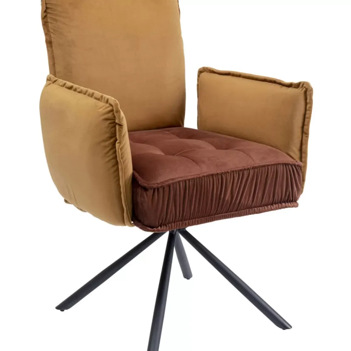 - Zweifarbiger Polsterstuhl In Braun Mit Armlehnen Und Sternfus In Schwarz Aus Metall,Gekleidet In Kuschelige Samtoptik