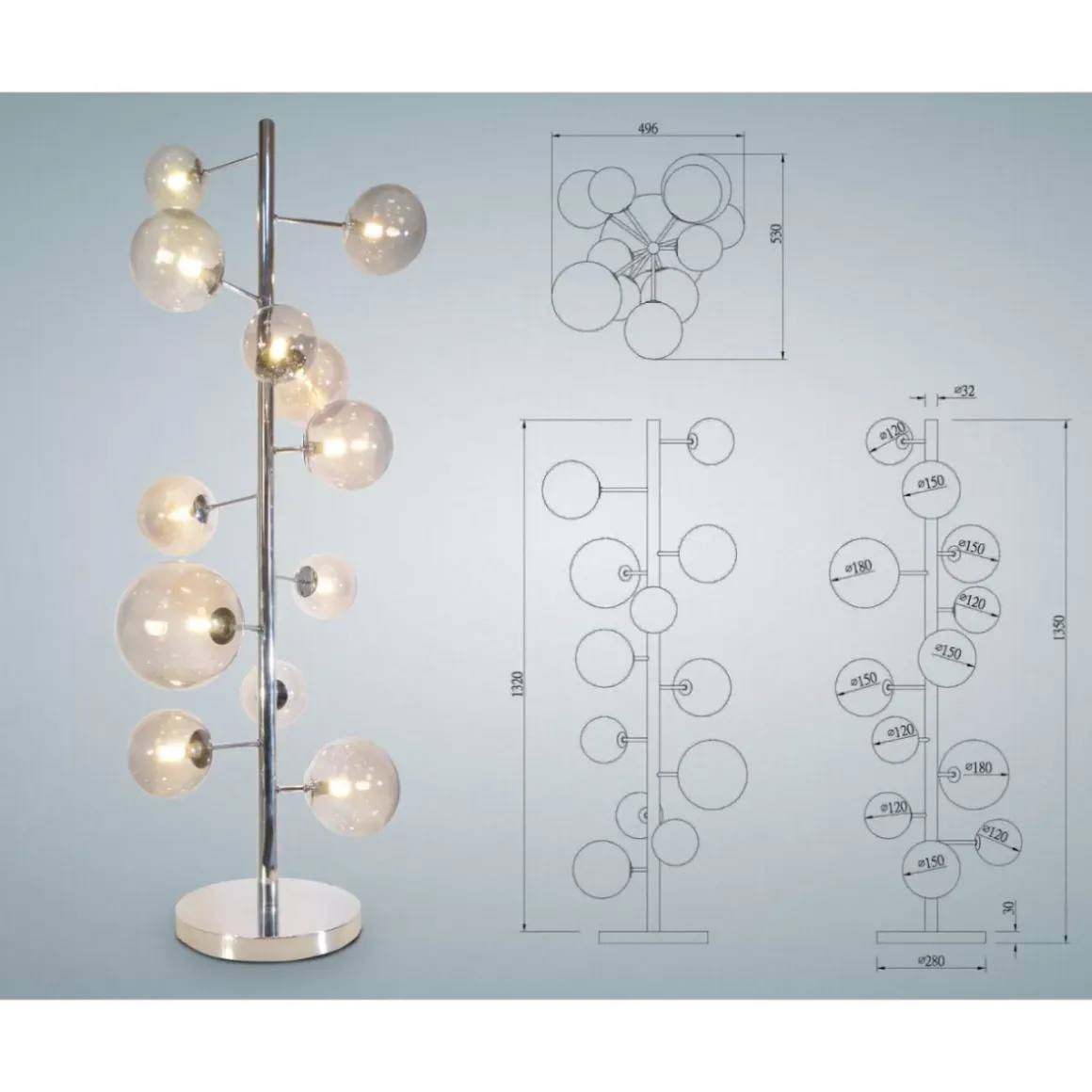 - Grose Stehleuchte Mit Leuchtkorpern Aus Unterschiedlich Grosen Kugeln Aus Gefarbtem Glas