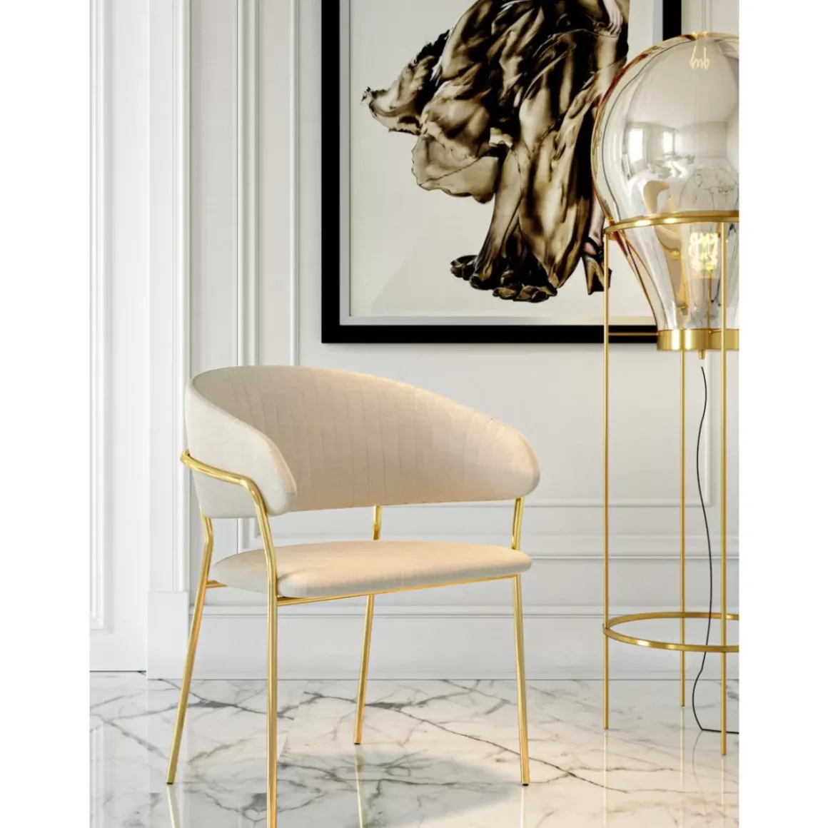 - Bringt Immer Einen Hauch Von Eleganz Ins Zimmer: Der Mix Aus Goldfarbenem Gestell Und Dem Bezugsstoff In Samtigem Creme