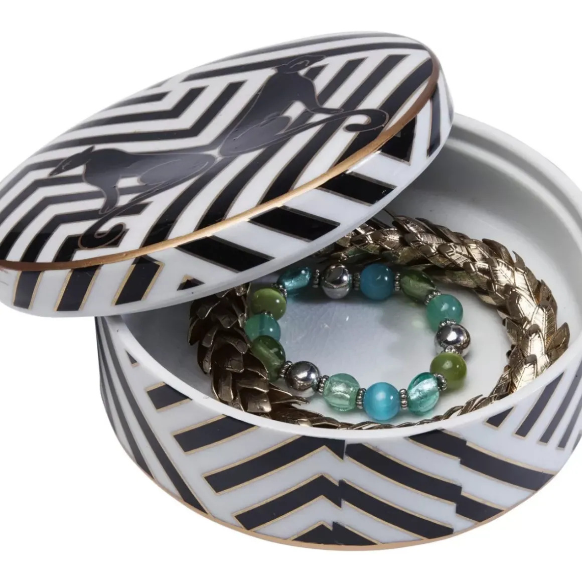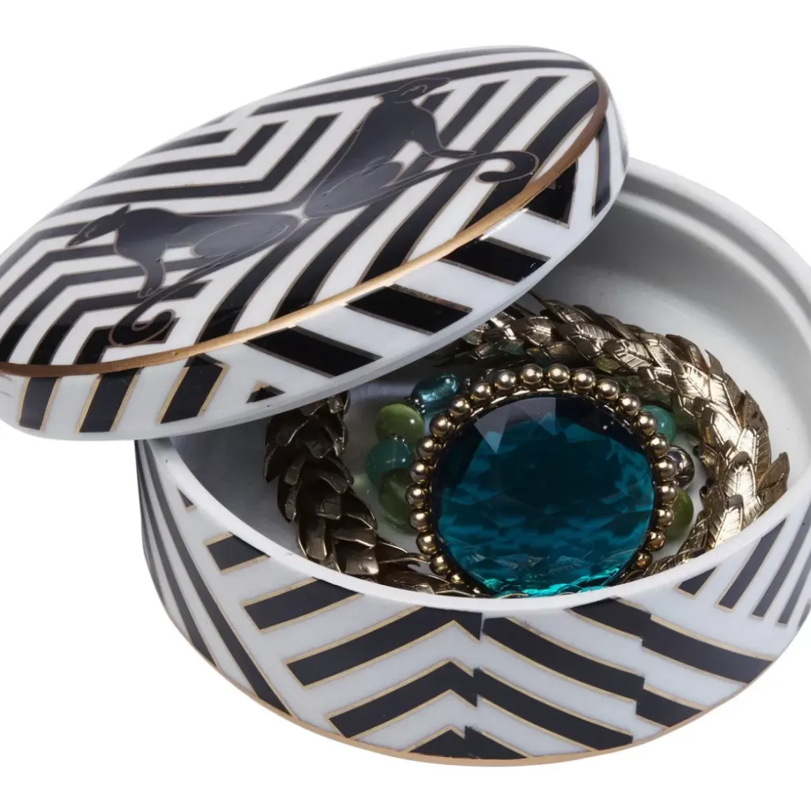 - Das Beste,Was Feinen Schmuckstucken Passieren Kann: Diese Bildhubsche Keramikdose Im Schicken Gatsby-Style
