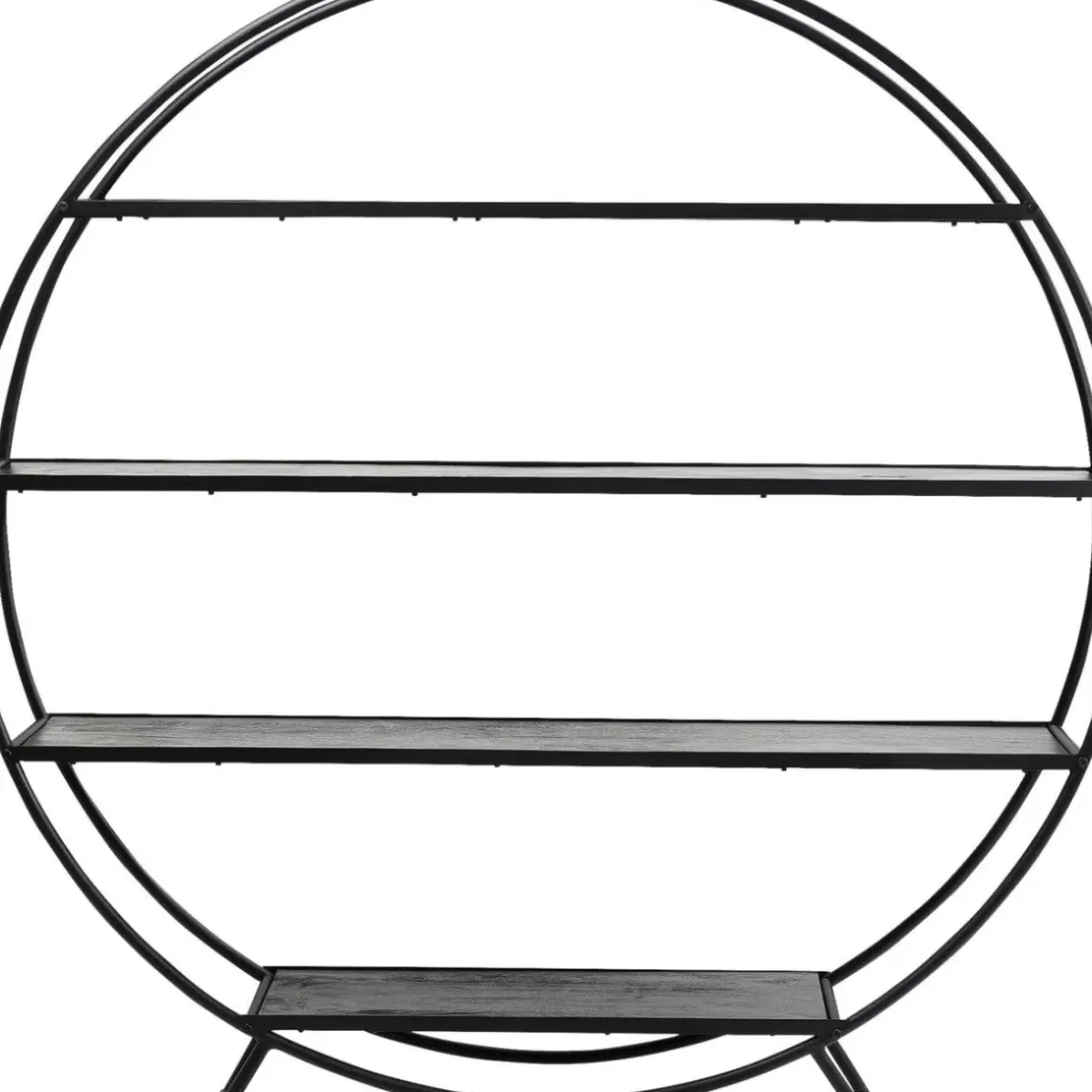 - Groses,Rundes Regal Aus Schwarz Lackiertem Stahl Mit Regalboden Aus Massivholz