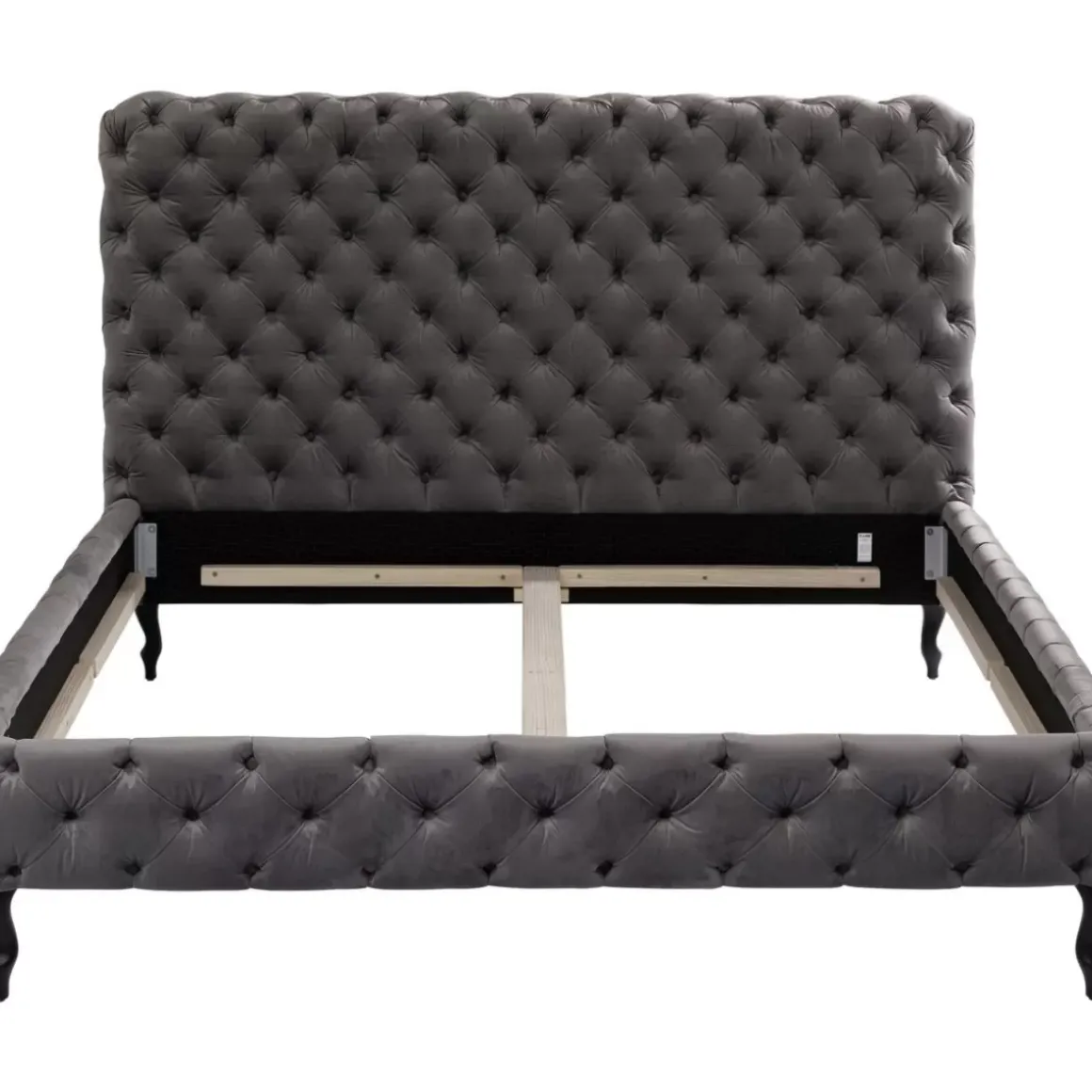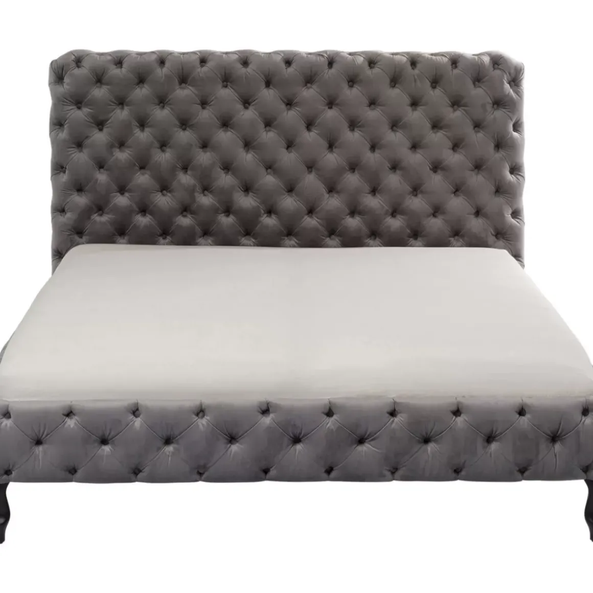 - Luxurioses,Silbergraues Polsterbett Mit Einem Samtbezug,Umlaufender Kapitonierung Und Schwarzen Beinen Aus Buchen-Massivholz