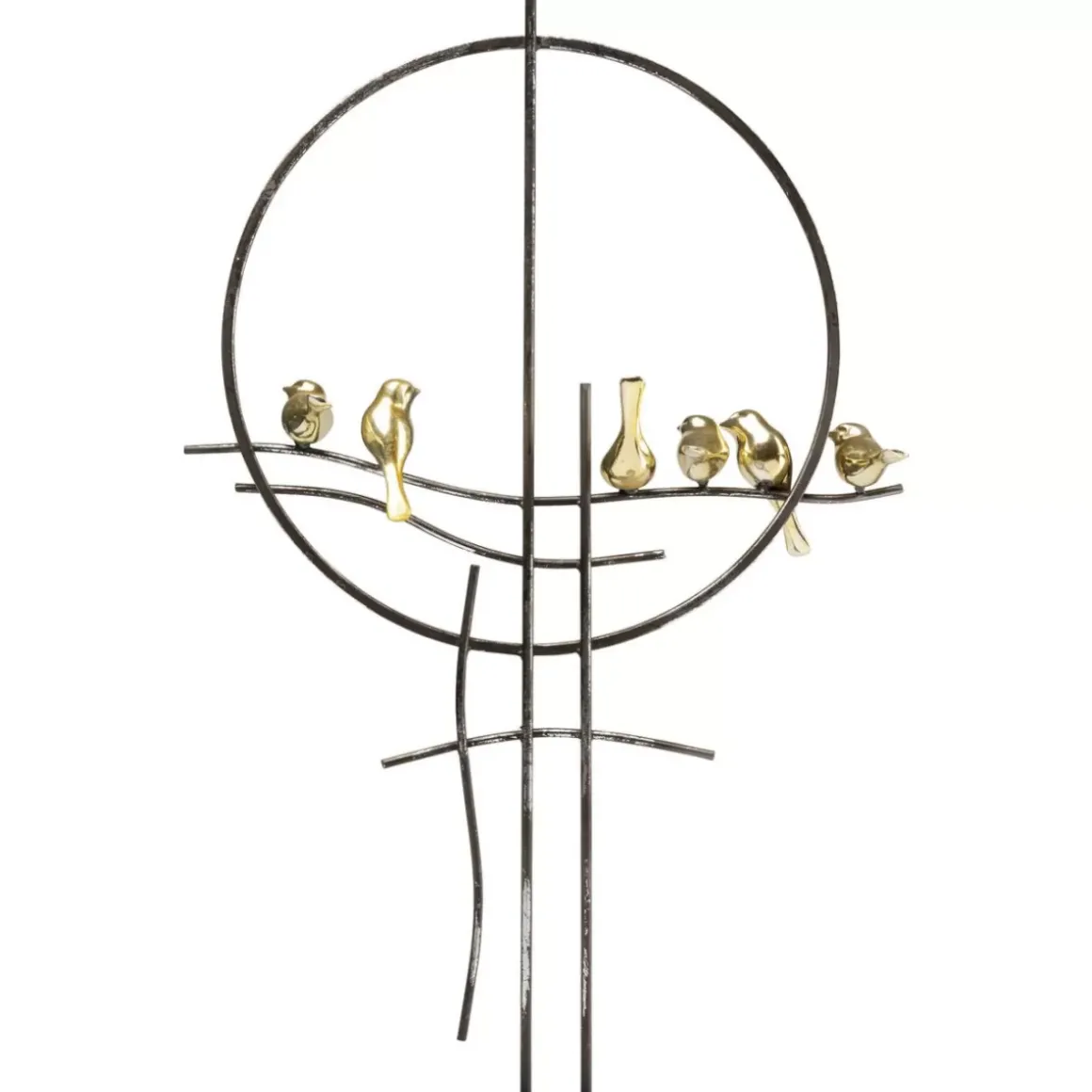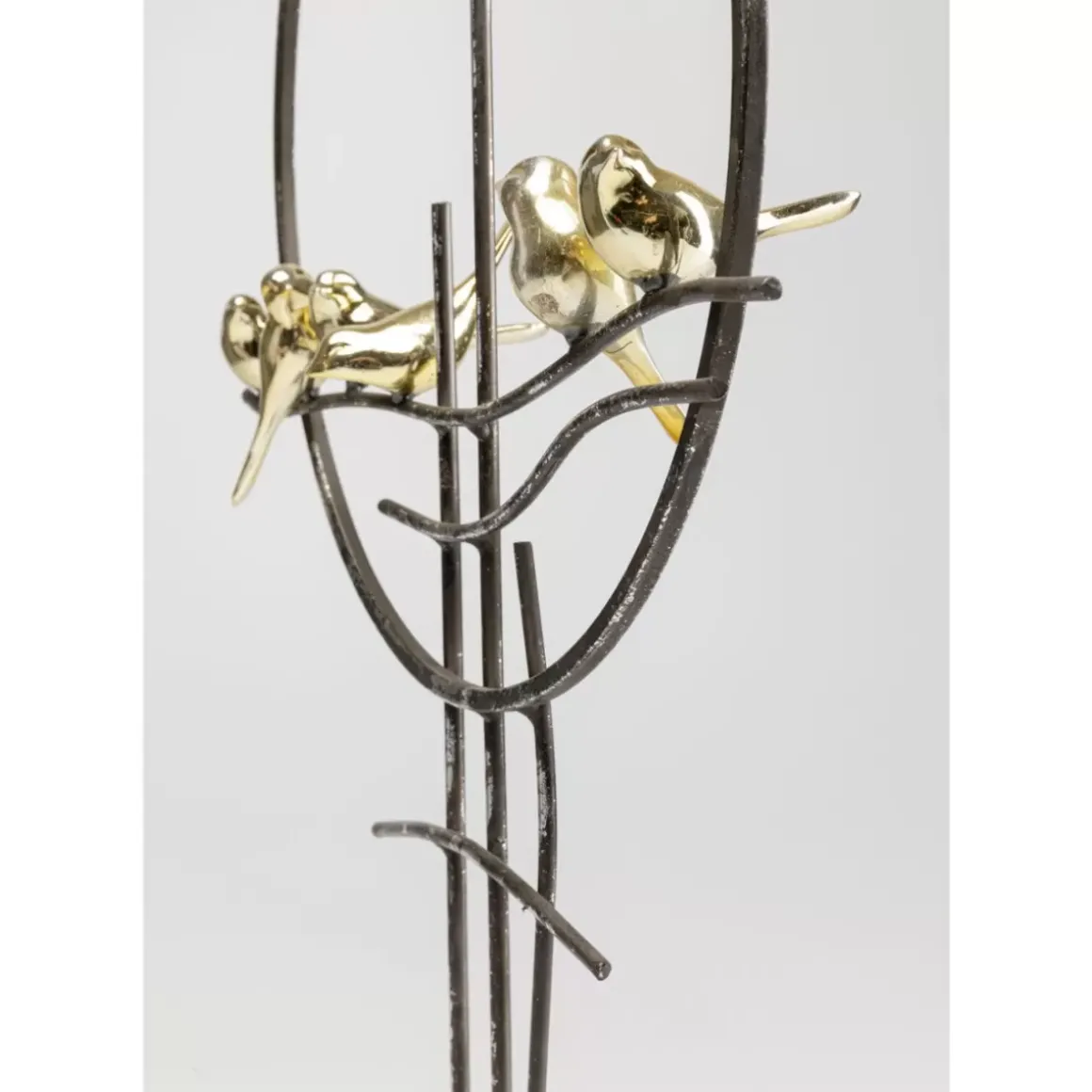 - Abstraktes Deko-Objekt In Schwarz Mit Sechs Goldigen Vogelfiguren Auf Einem Sockel Aus Echtem Marmor