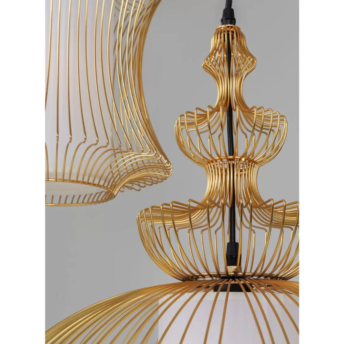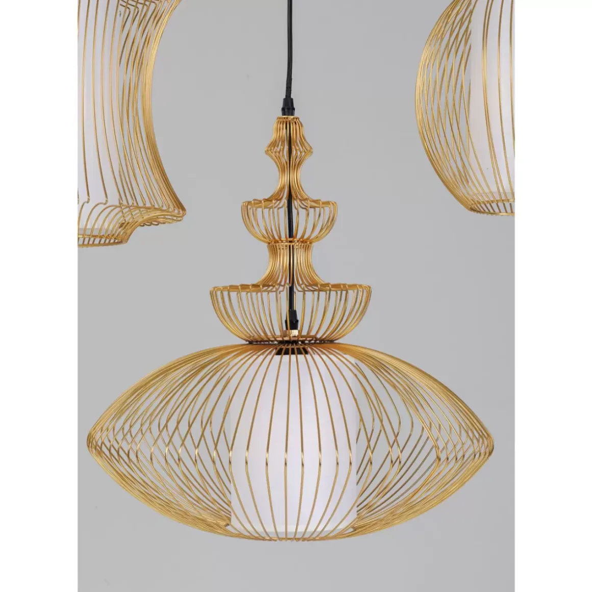 - Filigrane Schonheit: Hangeleuchte Mit Drei Goldfarben Lackierten Schirmen In Verschiedenen Lampion-Formen