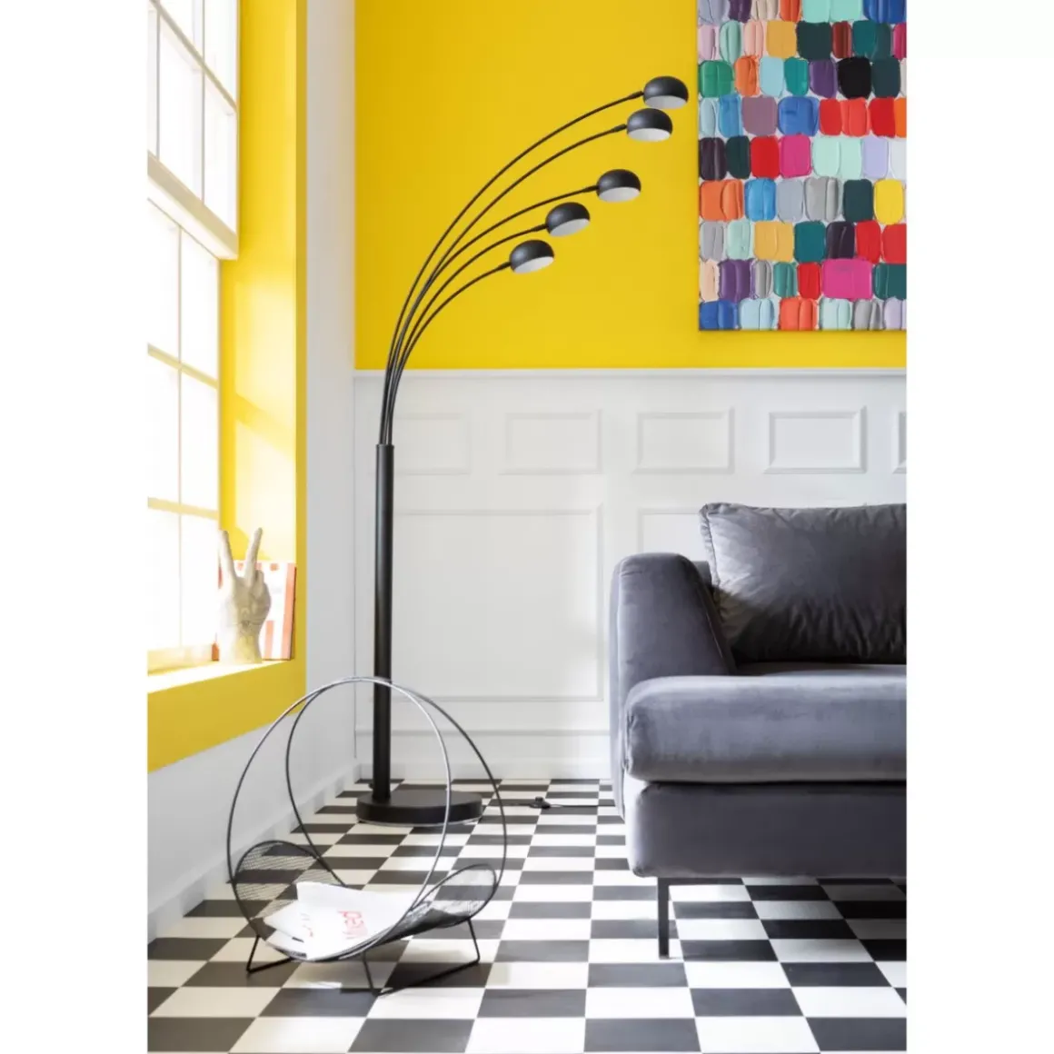 - Stehleuchte Aus Schwarz Lackiertem Stahl Mit Funf Lichtquellen