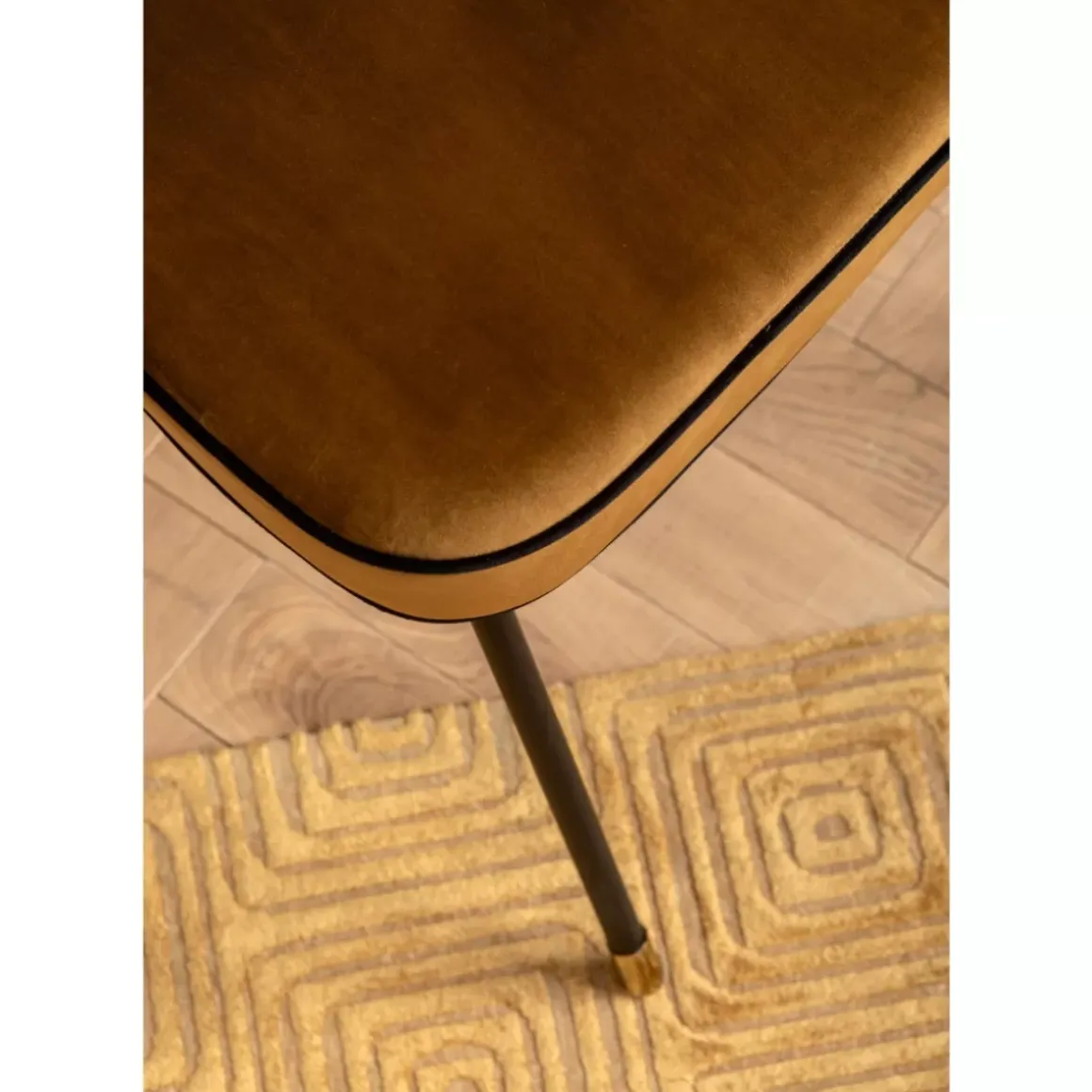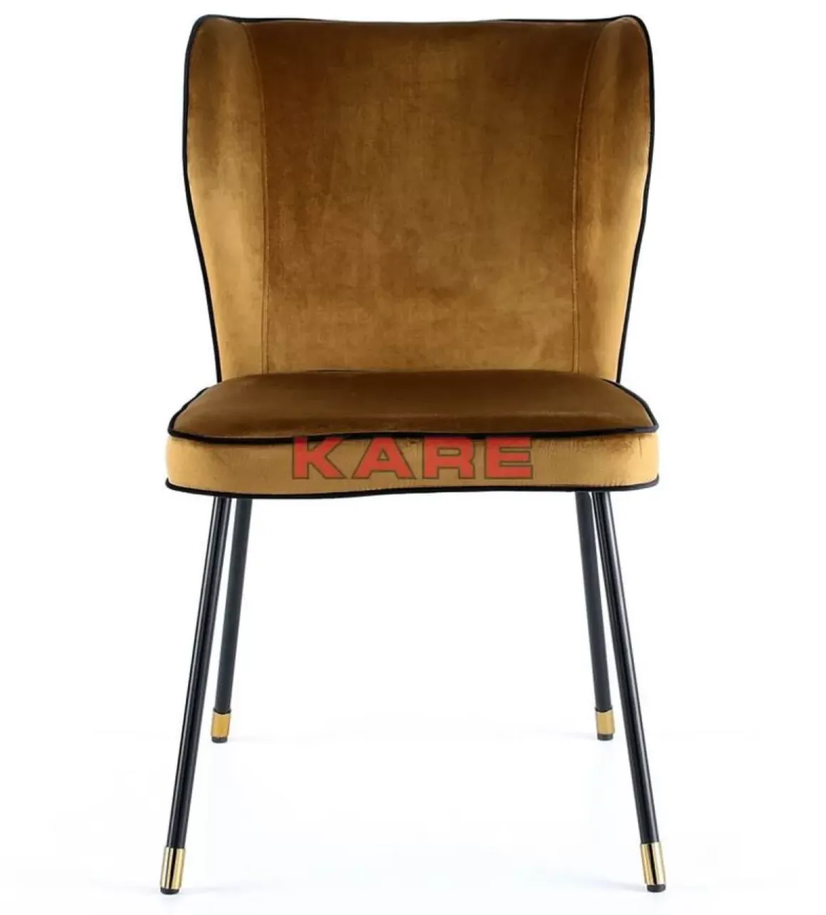 - Gepolsterter Stuhl Mit Curry Gelbem Bezug In Samtiger Optik,Schwarzen Ziernahten Und Lackierten Stahlbeinen