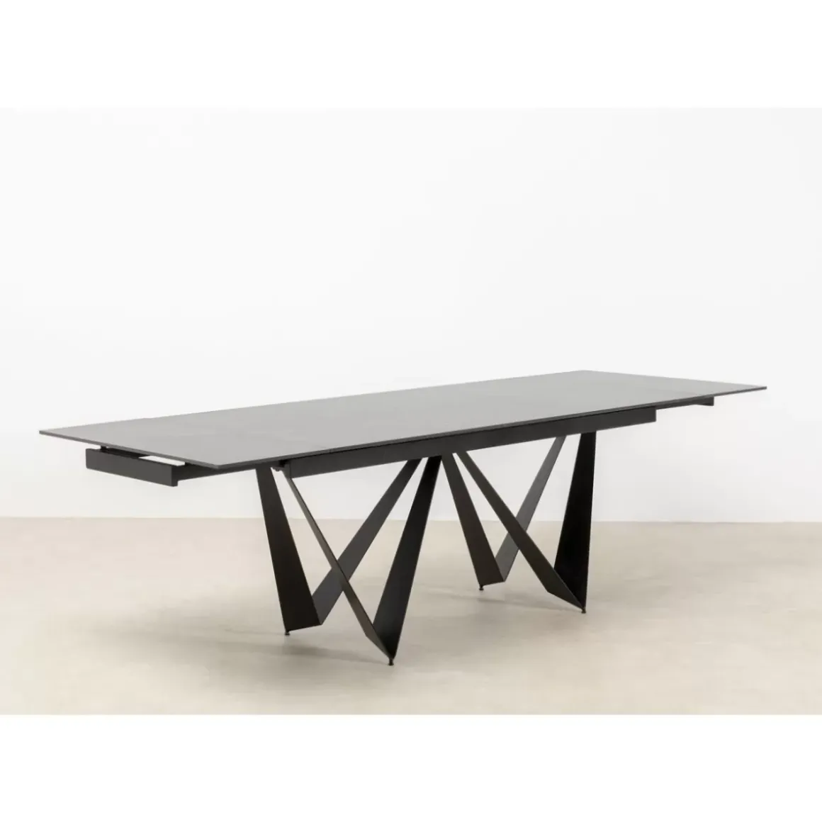 Ausziehbarer Esstisch In Schwarz,76 X 180 Bis 260 X 90 Zentimeter (H/B/T) Exklusive Tischplatte Aus Keramik Mit Heller,D…
