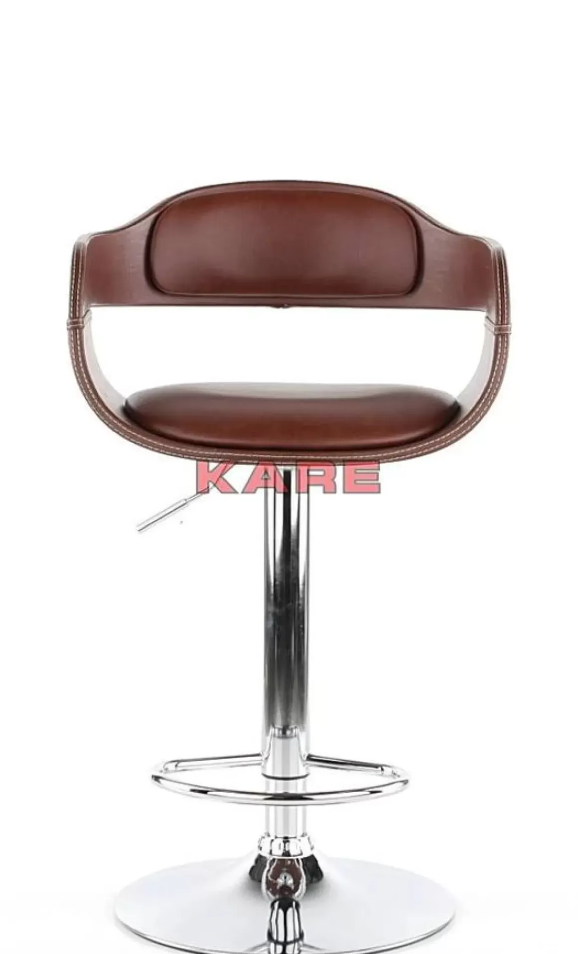 - Hohenverstellbarer Barhocker Mit Rundem,Chromfarbenem Stahl-Fus,Nougatfarbenem Bezug Im Vintage-Leder-Look Und Einer Fusstutze