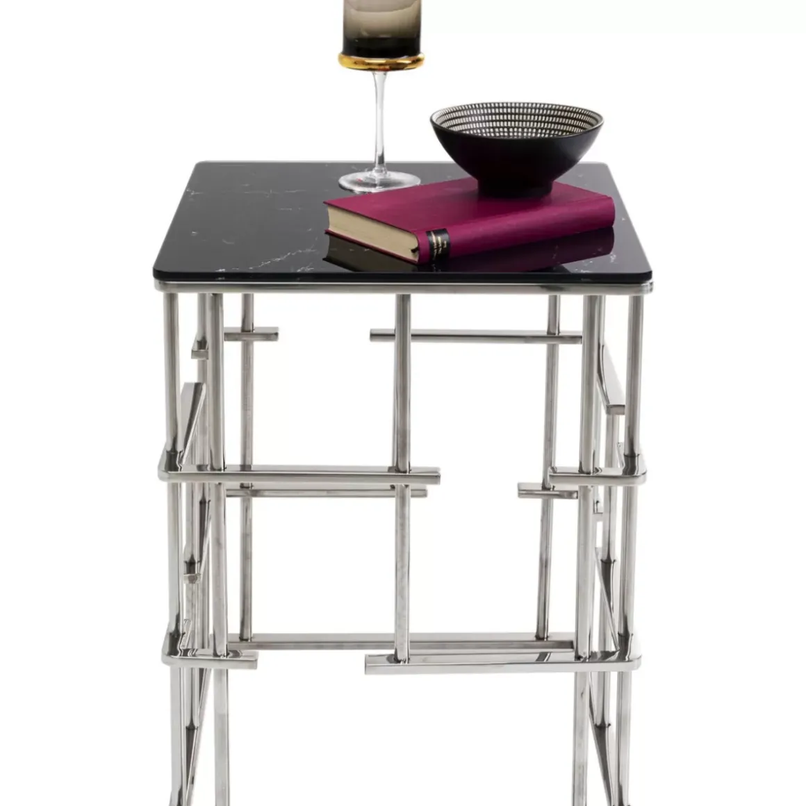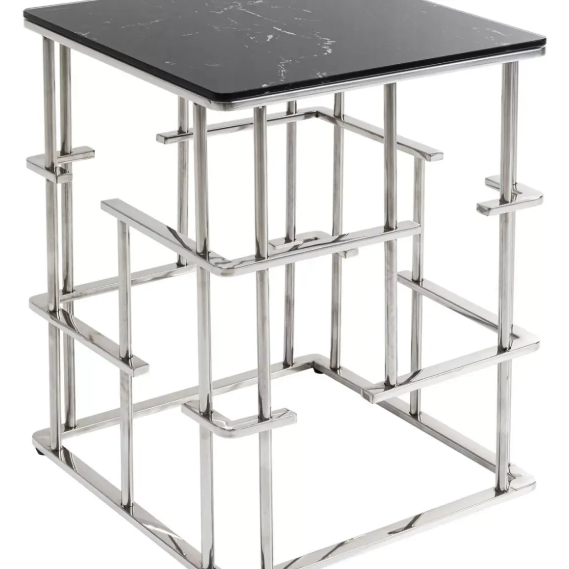 Auffallender Beistelltisch Mit Quadratischer Tischplatte In Marmor Optik In Schwarz Und Silber Hochwertig: Esg Sicherhei…