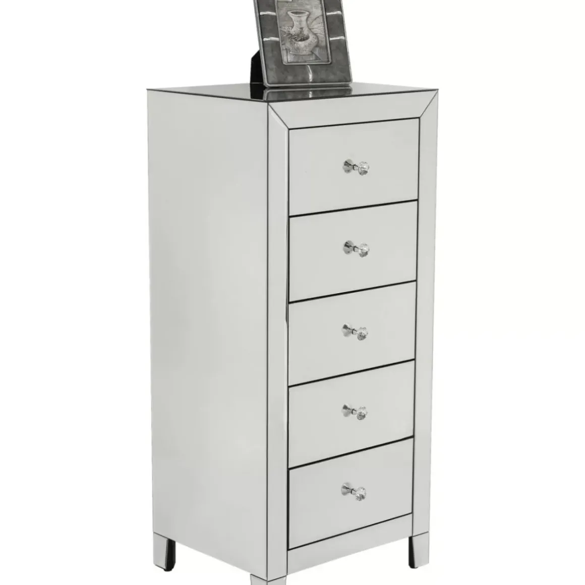 Verspiegelte Hochkommode,Die Durch Ihre Praktischen Mase Und Ihren Glam-Faktor PunktetTief,Hoch Und Mit Funf Schubladen …