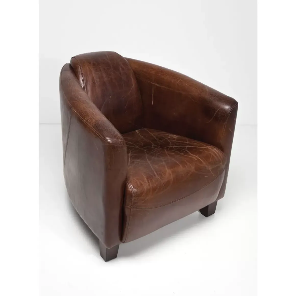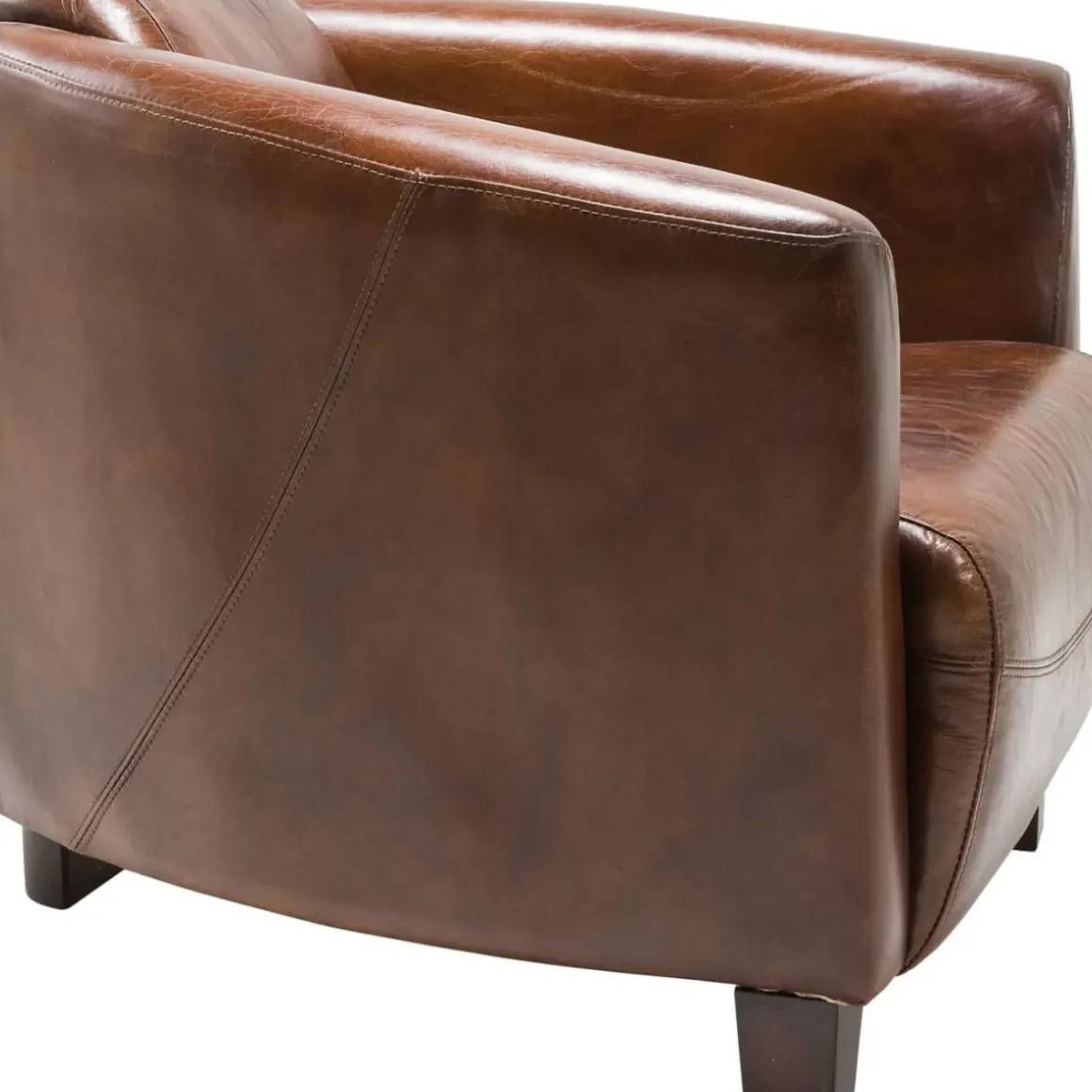 - Brauner Clubsessel In Hochwertigem Leder Mit Vintage-Touch Und Attraktiven Ziernahten