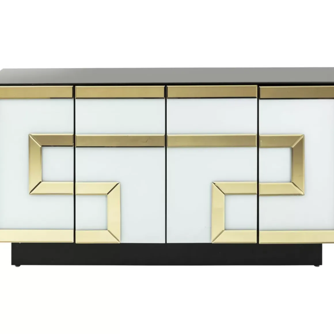 - Glossy-Style: Fronten Und Oberflachen Sind Mit Weis,Schwarz Und Gold Gefarbtem Glas Verkleidet,So Wirkt Die Luxuriose Kommode Luftig Leicht