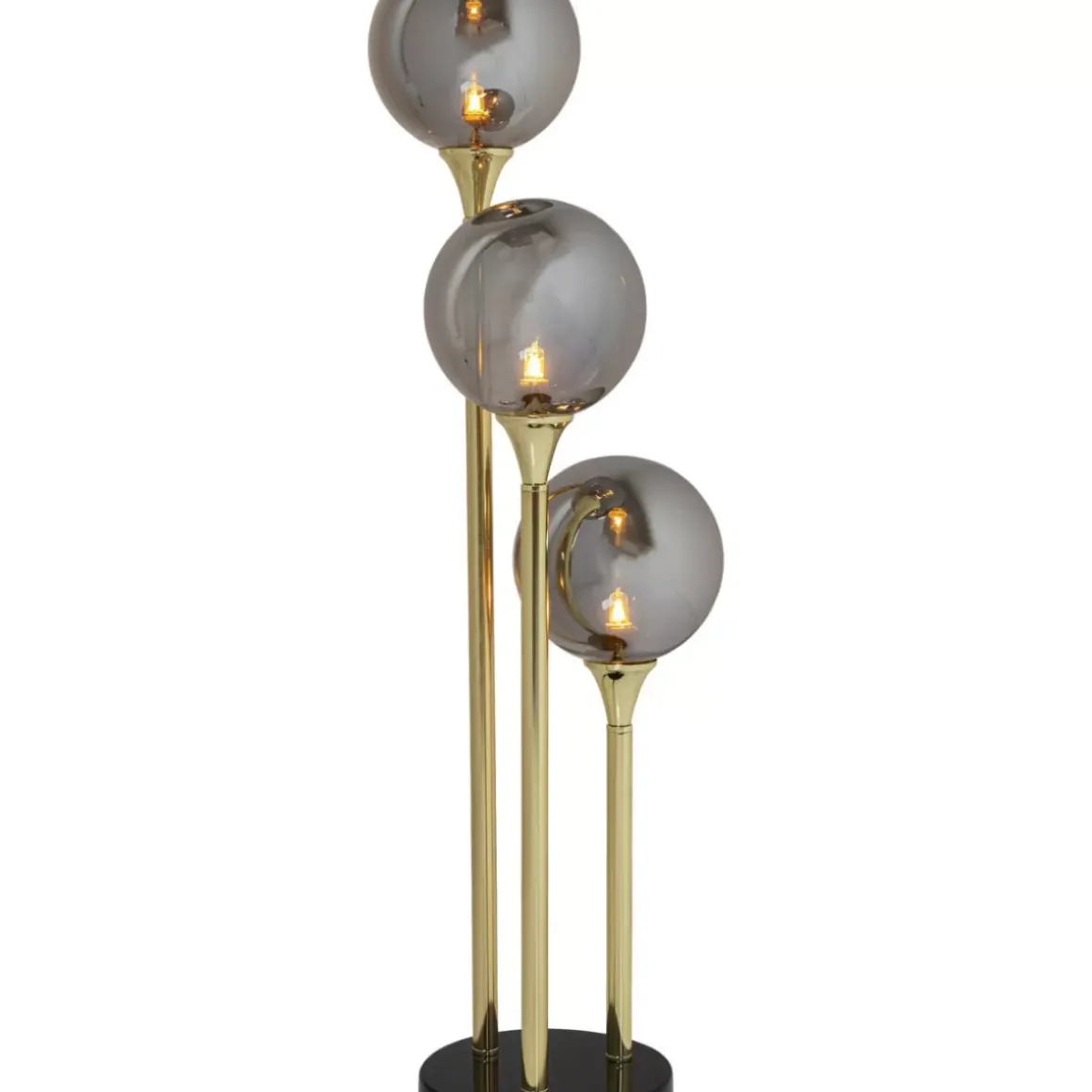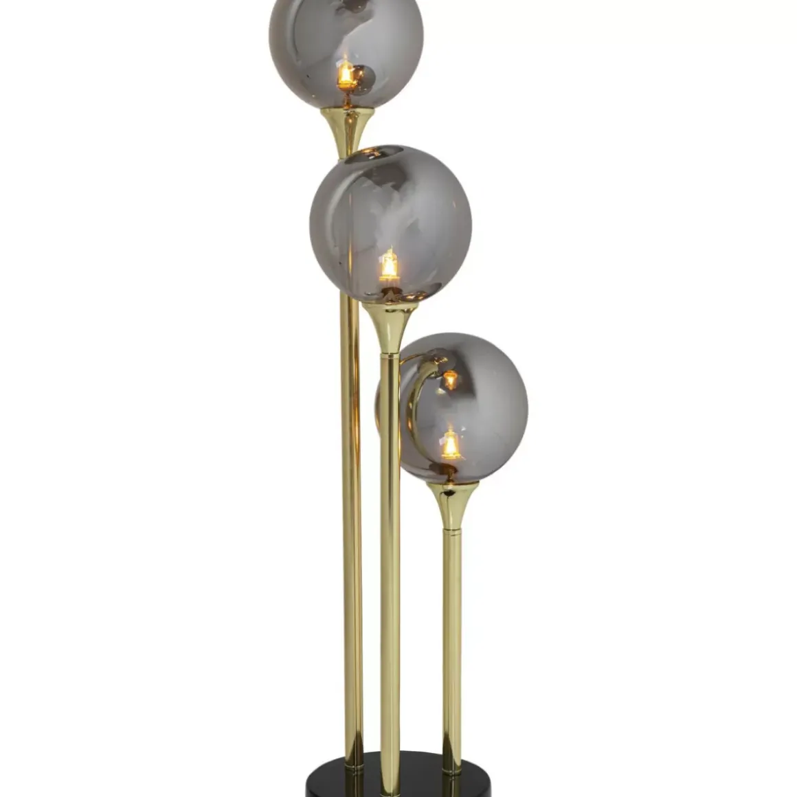 - Glamour Auf Edle Art Und Weise: Hochwertige Tischleuchte Mit Handgearbeitetem Marmorfus Und Drei Runden Schirmen Aus Getontem Glas