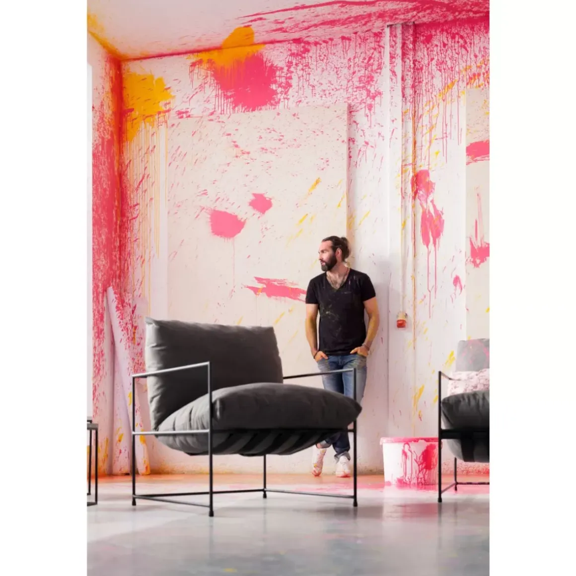 - Grauer Polstersessel Mit Dicker,Komfortabler Polsterung Und Minimalistischem Stahlgestell In Schwarz